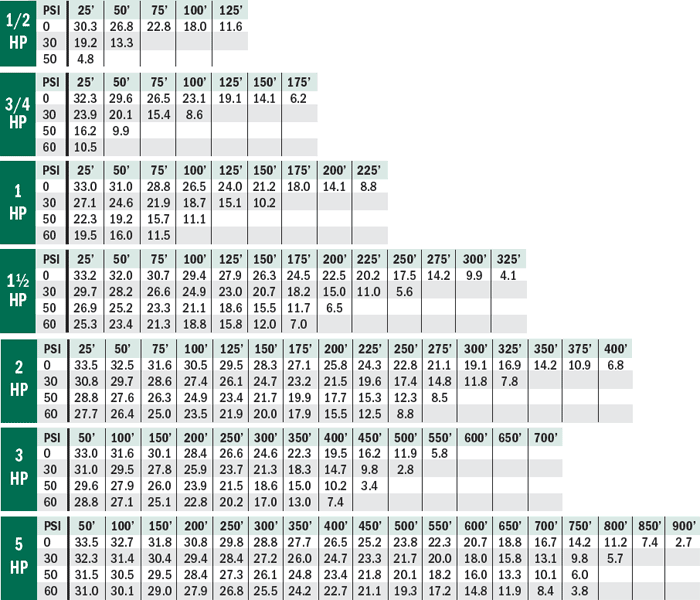 All P series submersible pumps are designed to pump within the 20 GPM range. Sizes are available from 1/2 to 5 HP.